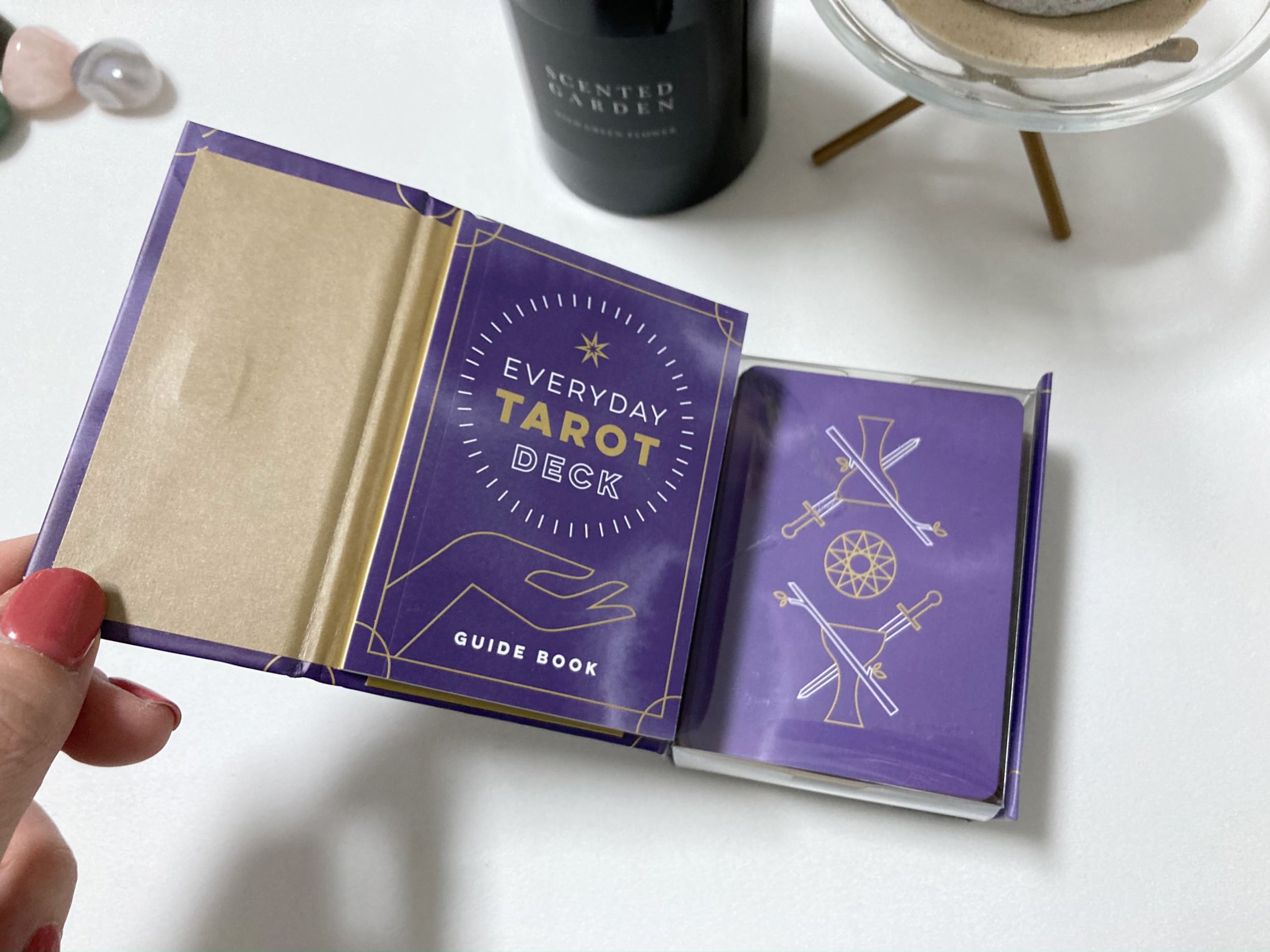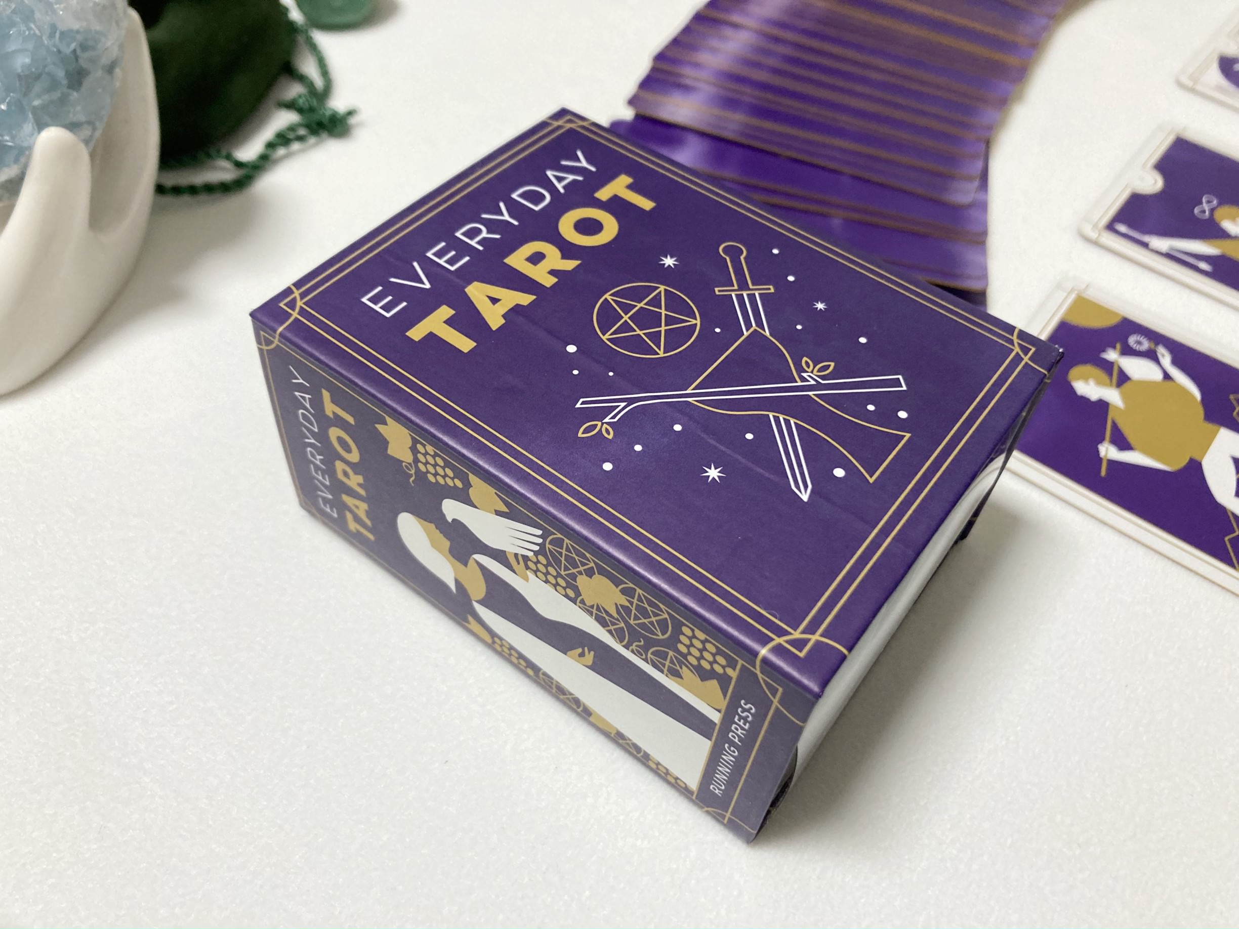 퍼플과 골드 색상의 조합이 예쁜 EVERYDAY TAROT 미니 버전 입니다. 사이즈 고민하다 이 카드는 미니버전이 왠지 더 끌려서 미니 사이즈로 샀어요.
