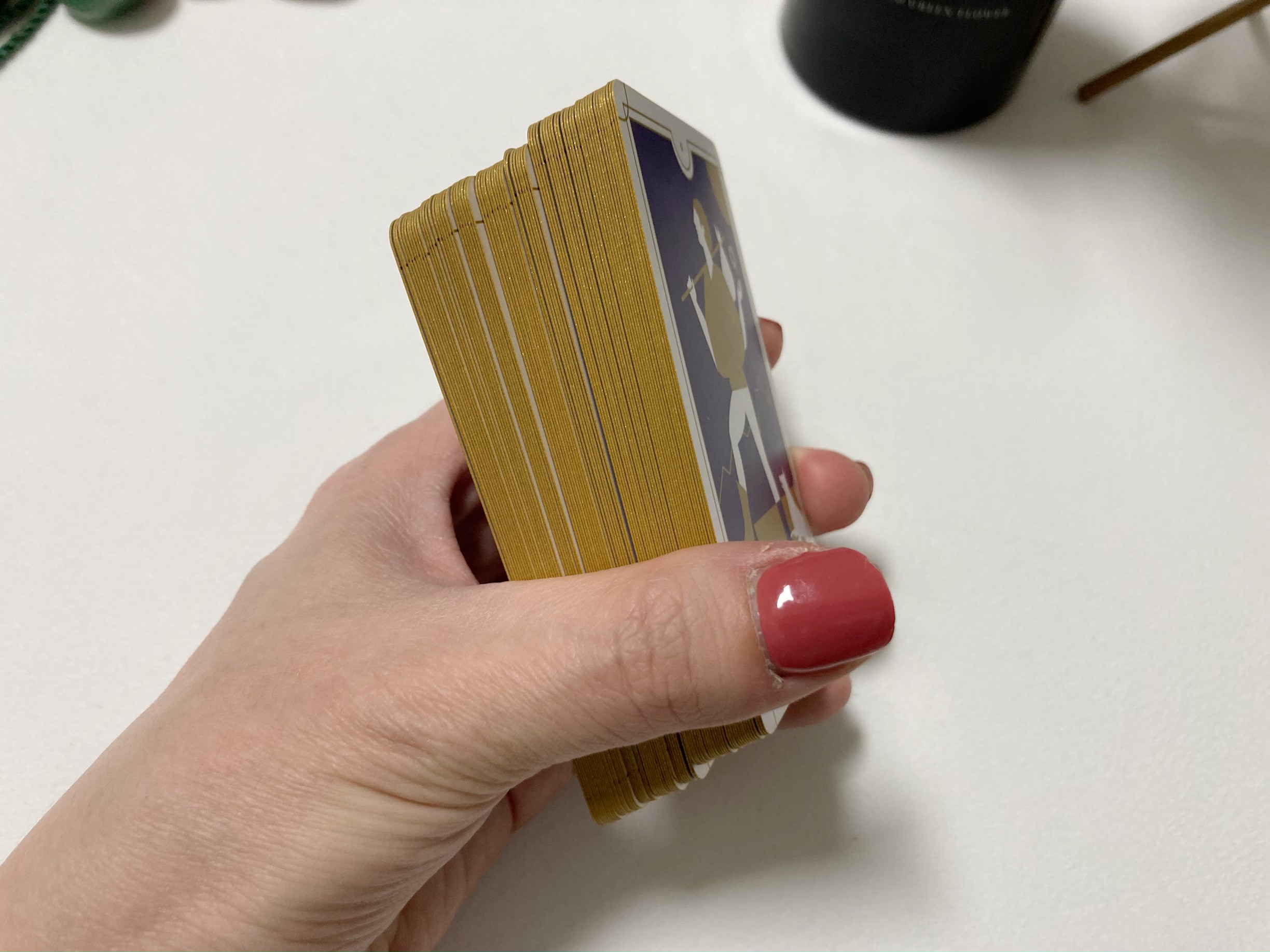미니 버전이긴 하지만 다른 미니카드들에 비해 작지 않아요. 매트한 재질이라 카드끼리 붙어서 예쁘게 안펴지는게 좀 아쉽지만 그림 보기도 편하고 자주 사용하게 될거 같습니다.